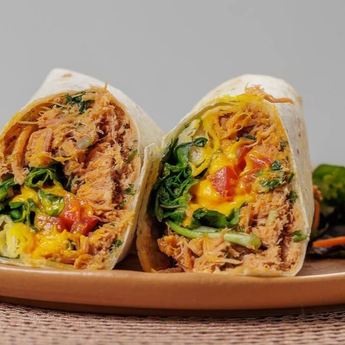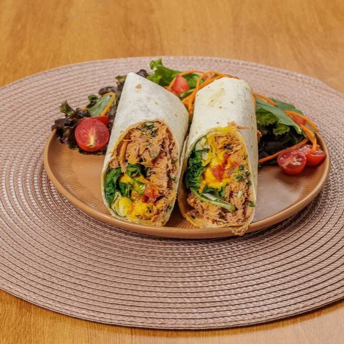 Massa síria, produção artesanal, leve e fresca, Cubos de frango, queijo parmesão, cream cheese e alface americana