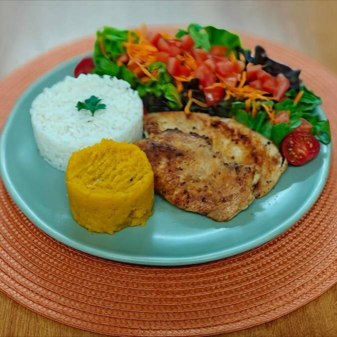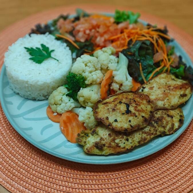 Arroz Branco, Filé De Frango , Mix De Folhas E Brócolis