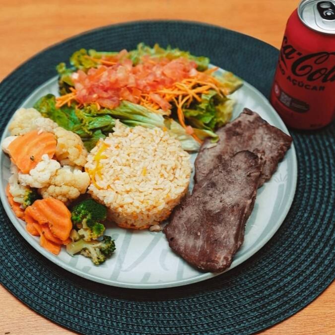 Arroz Integral Com Cenoura, Filé Mignon, Legumes Grelhados + Refrigerante 350 Ml