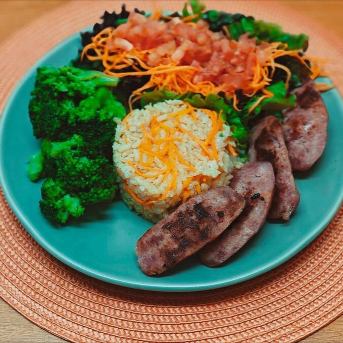 Arroz Branco, Legumes , Mix De Folhas E Linguiça Toscana Aurora