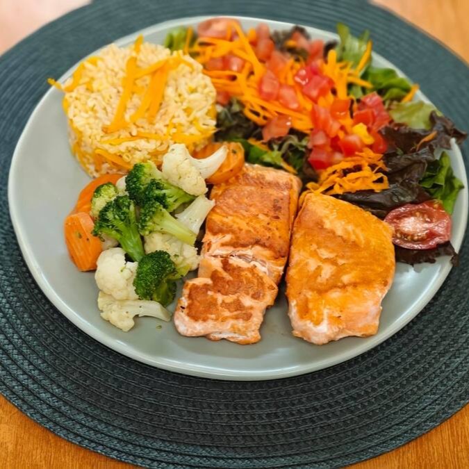 Arroz Integral ,salmão, Brócolis Ao Alho E Óleo + Refrigerante 350 Ml