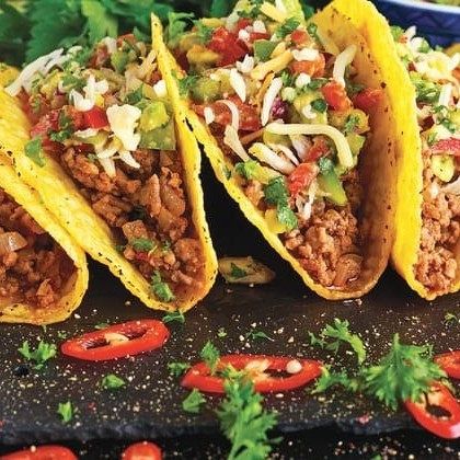 Tortilla de trigo fininha e levemente tostada, enrolada e recheada com delícias típicas Mexicanas. Montado com carne moída, queijo prato, salsa Mexicana, guacamole e sour cream.