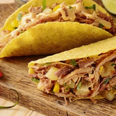 Componentes: 1 taco crocante de carne, 1 taco crocante de frango, 1 taco crocante de pernil e 1 suco natural de 300ml. Acompanha todos os molhos e pimenta. Obs: enviamos todos os tacos desmontados para não murchar.
