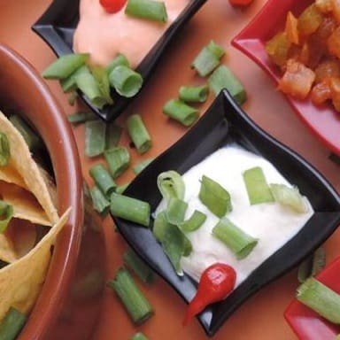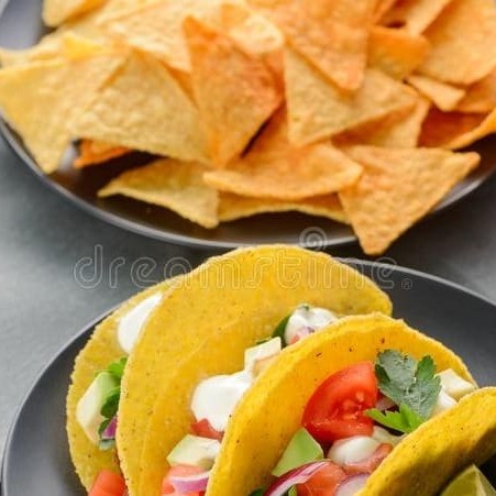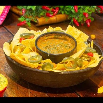 Duas crocantes tortillas de milho fritas em forma de Concha...... Acompanha salsa Mexicana, guacamole e sour cream.