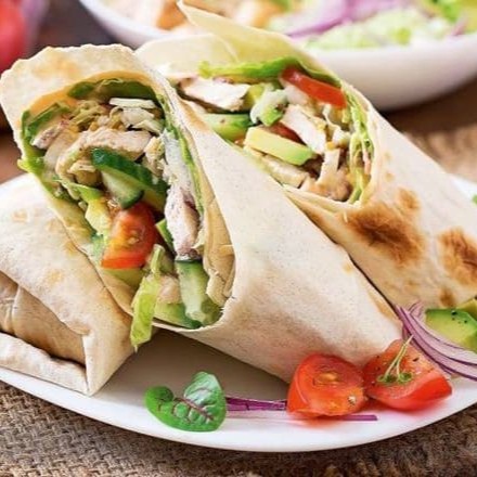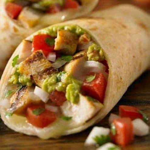 Tortilla de trigo fininha e levemente tostada, enrolada e recheada com delícias típicas Mexicanas. Montado com frango desfiado, queijo prato, salsa Mexicana, guacamole e sour cream.