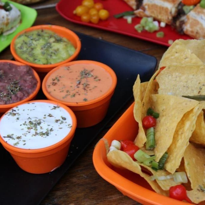 2 Mini Burritos Tradicionias Mexicanos de carne, 2 deliciosas Mini Quesadillas de queijos, 2 Tacos Shell crocantes para você montar sendo 1 de frango, e outro de pernil, 150g de Chilli Beans com 40 grs de Nachos. Cortesia de 1 suco 300ml.