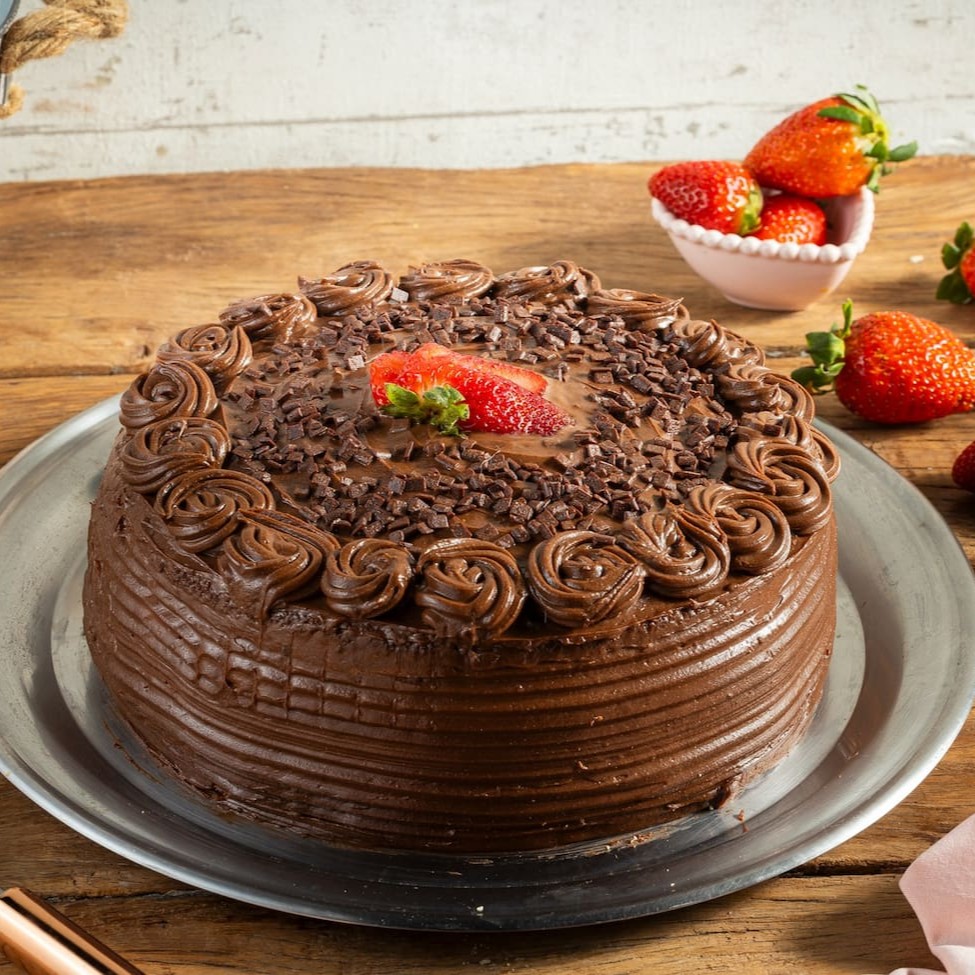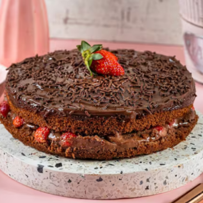 Feito pra comemorar em grande estilo! Massa fofinha de chocolate, recheio cremoso de brigadeiro caseiro e pedaços de morango fresco espalhados em cada camada. Pesando 2,8kg, é o bolo ideal pra dividir com a família, os amigos — ou guardar só pra você! Coberto com muito brigadeiro e carinho, ele é o destaque da mesa e o primeiro a acabar!