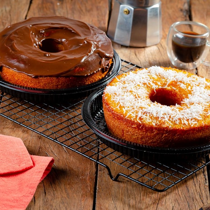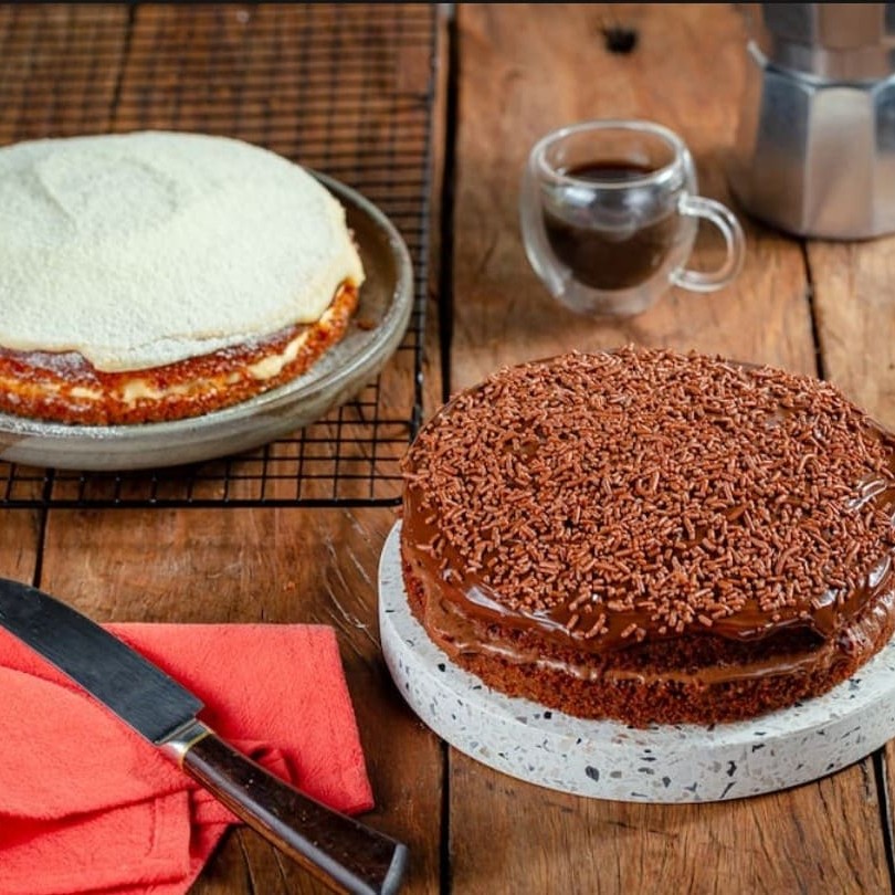 Aqui você escolhe 2 bolos deliciosos, Um bolo tradicional com baita desconto Um bolo gelado e recheado