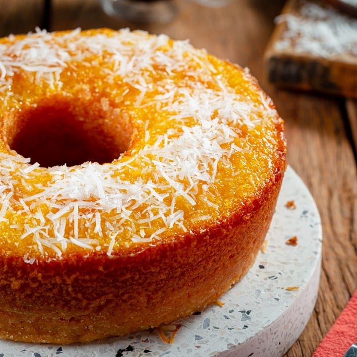 Este bolo mora em nossos corações. Feche os olhos agora e imagine aquele cheiro de milho entrando e se espalhando pela casa. De repente surgem aquelas lembranças gostosas da infância, feito com milho e um toque de coco em sua massa, aquele bolo que você come sem pressa e aprecia cada pedaço bem devagar, bem molhadinho. 700 Grs