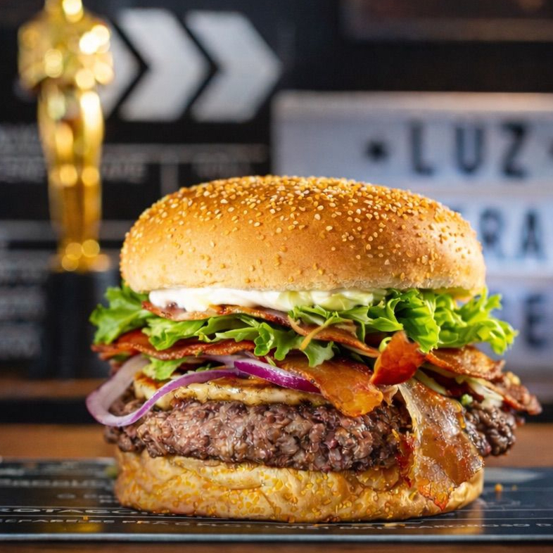 Esse burger é o verdadeiro protagonista Sinopse do burger: -Pão Brioche seladinho - 1 carne artesanal 160gr -Deliciosa cebola caramelizada feita na casa -Queijo cheddar derretido - Bacon Picado -Molho de barbecue -Não trocamos ingredientes e nem enviamos a parte -Ponto da carne: o burger vai ao ponto da casa ( vermelho por dentro) Caso queira bem passado, colocar na observação do pedido, cas