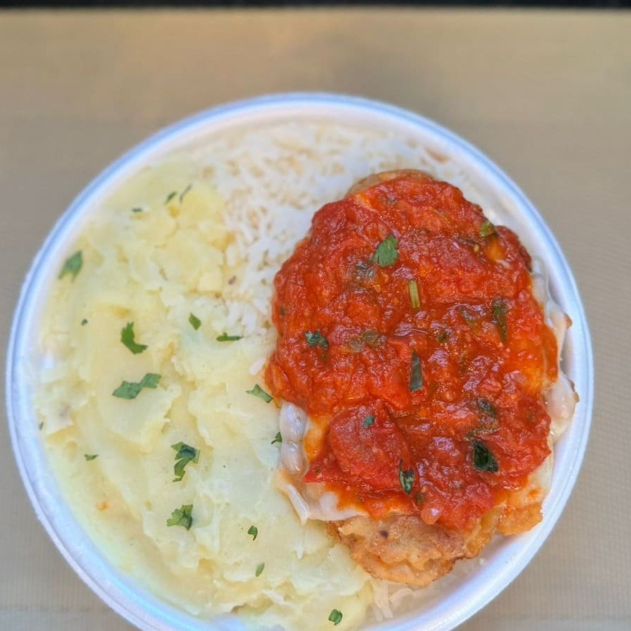 Frango Parmegiana & Purê + R$ 19,99 Leve Outro Marmitex