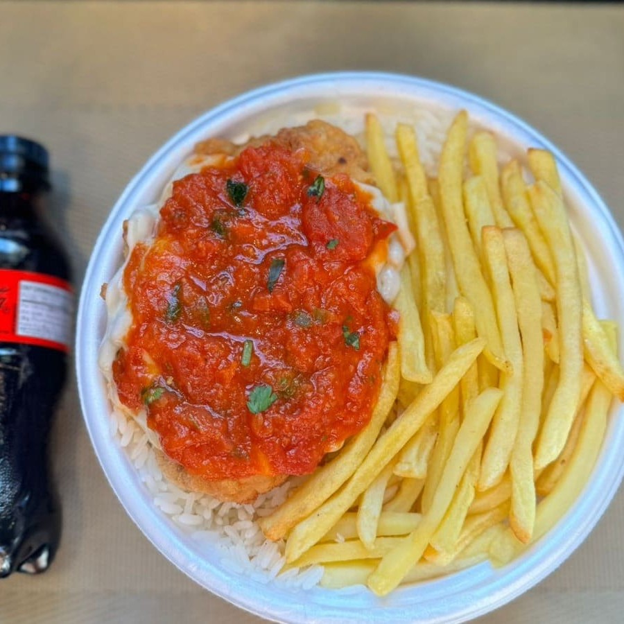Frango Parmegiana & Fritas + Coca Pet + R$ 19,99 Leve Outra Marmitex