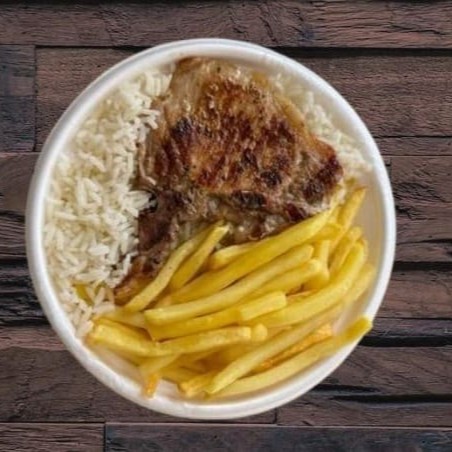 Marmita com deliciosa bisteca suína preparada com arroz branco, feijão e batatas fritas. Marmita indicada para 01 pessoa.