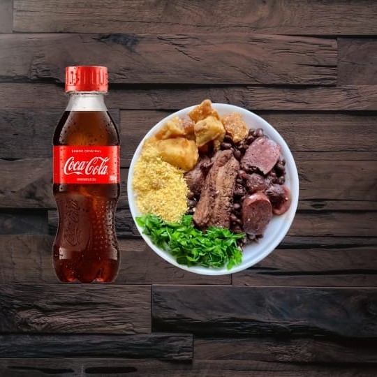 Uma feijoada simples individual mais uma Coca-Cola garrafinha 200 ml