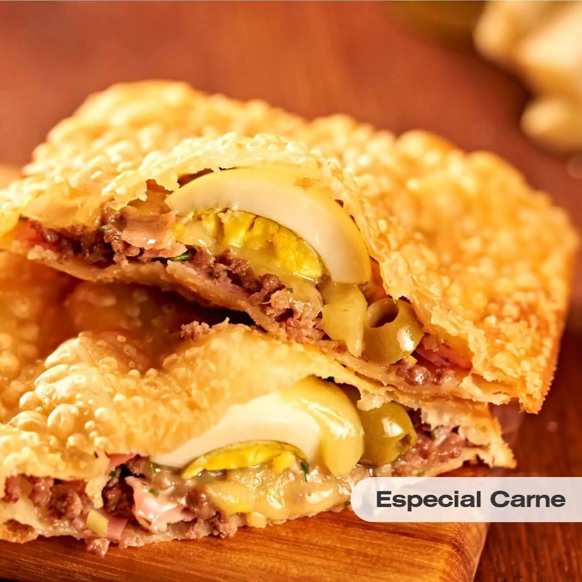 Delicioso pastel de feira de 18 cm e bem recheado o Mini vem carne moída bem temperado com presunto ,queijo e ovos