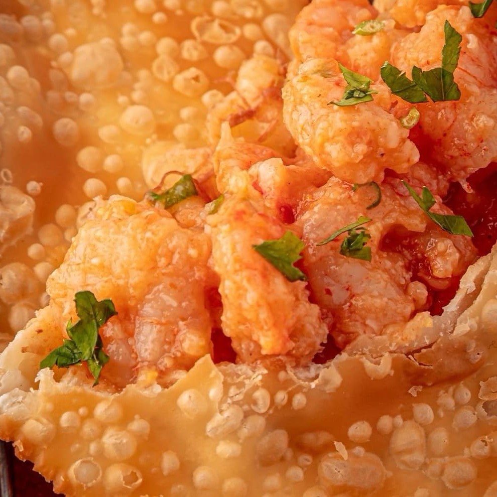Delicioso Pastel de feira de 18cm com camarão inteiro cozido e bem temperado com Catupiry Original