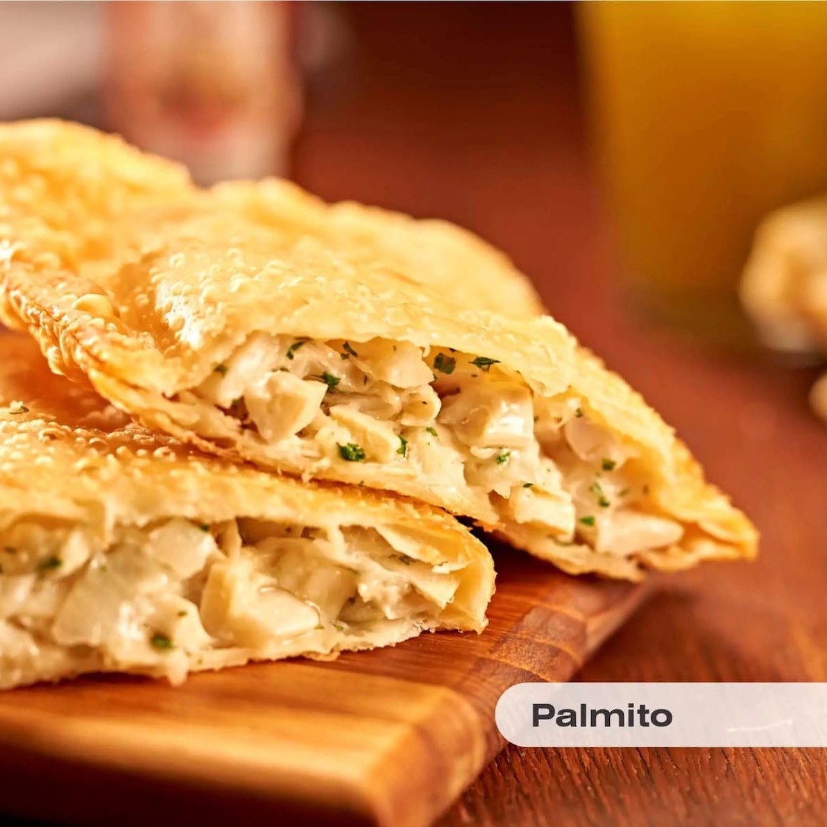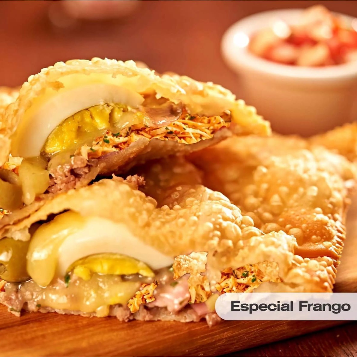 Delicioso pastel de feira o Mini especial é sem dúvida o mais recheado e sequinho com frango desfiado temperadinho com presunto, queijo mussarela e ovos