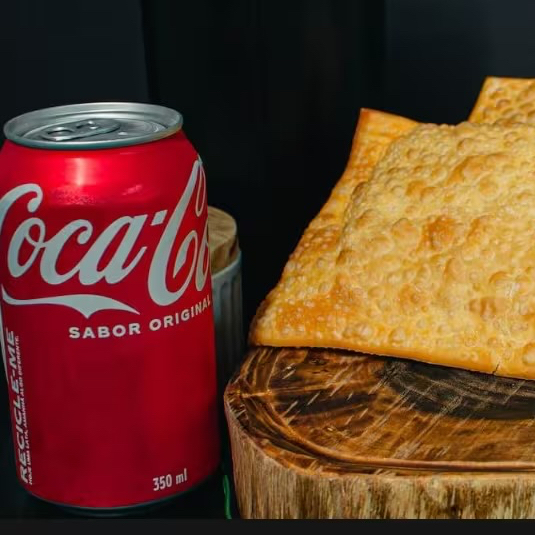 Dois pastéis da sua escolha dos nossos deliciosos pastéis mais uma coca cola lata escolha entre (carne, queijo , pizza calabresa com queijo, Bauru ,frango catupiry)