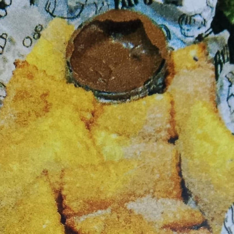 Mini pastéis de vento passado no açúcar e canela com um pote doce de leite