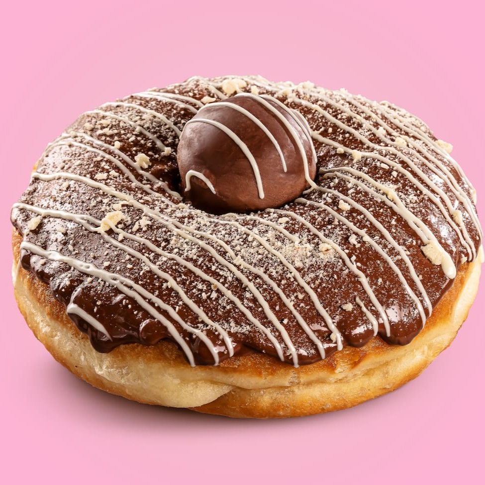 Se prepare para uma explosão de sabor com nossos Donuts Sonho de Valsa! Cobertos com chocolate ao leite, recheados com bolacha wafer triturada e bombom Sonho de Valsa, e decorados com riscos de chocolate branco, são uma verdadeira tentação para os amantes de doces. Cada mordida é uma festa de sabores e texturas, perfeita para aqueles momentos em que só um doce incrível pode satisfazer. Seja para u