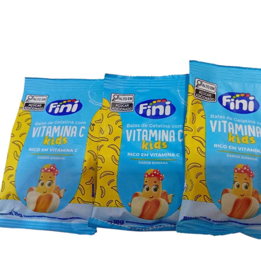 3 Balas De Gelatina Fini Vitamina C Kids Banana 18 Gramas Cada