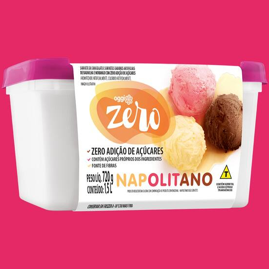 Sorvete napolitano zero açúcar, ideal para quem quer se cuidar. Alérgicos: Contém glúten, derivados de leite e soja. Pode conter derivados de castanhas