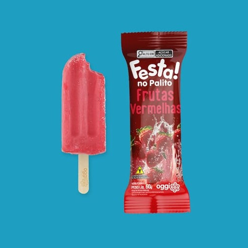 Picolé de iogurte com frutas vermelhas, delicioso e doce. Alérgicos: Contém glúten, derivados de leite e soja. Pode conter derivados de castanhas
