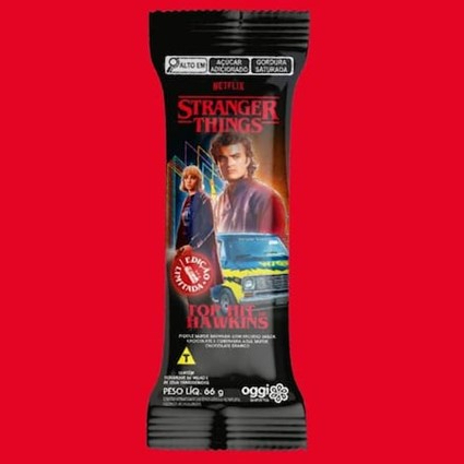 Esse picolé une tudo o que os fãs de Stranger Things amam: baunilha cremosa, recheio de chocolate e cobertura de chocolate branco. Três camadas de sabor em um formato tradicional que é sucesso garantido! Alérgicos: contém derivados de leite e de soja. Pode conter cevada, trigo, centeio, aveia, ovos, amendoim, amêndoa, avelãs, castanha-de-caju, castanha-do-pará, macadâmias, nozes, pecãs, pistaches, pinoli e castanhas.