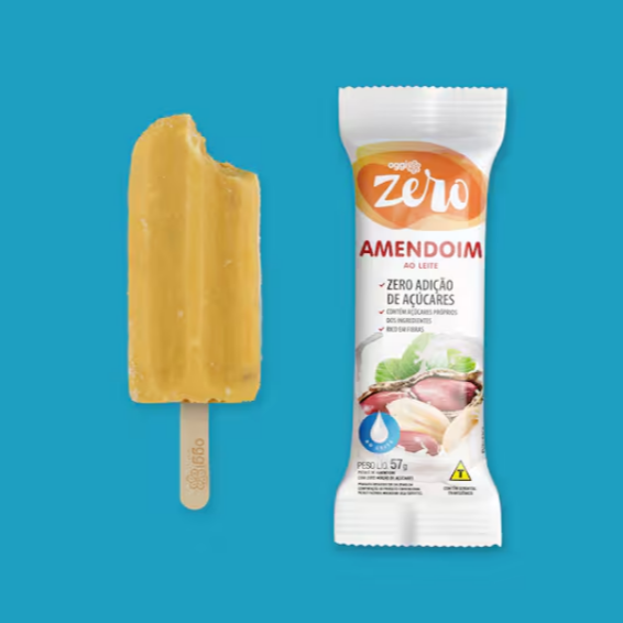 Picolé cremoso de amendoim. Alérgicos: Contém glúten, amendoim, derivados de amendoim e leite. Pode conter derivados de castanhas.