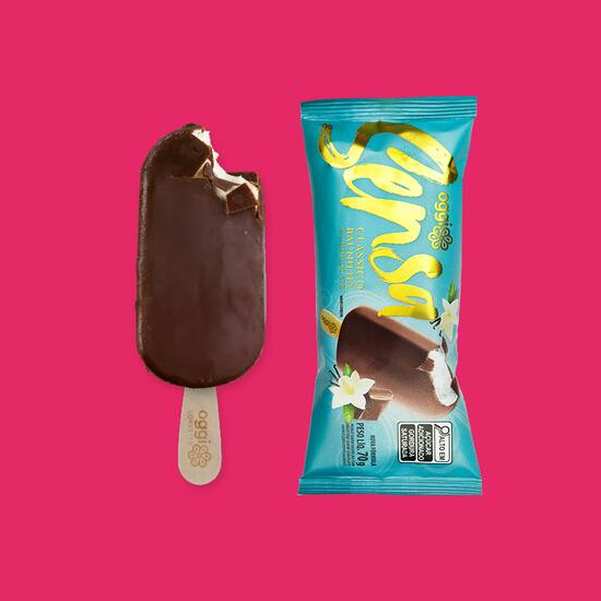 O tradicional bombom no palito. Picolé sabor baunilha com recheio sabor chocolate e cobertura sabor chocolate branco com crocante de amendoim. Alérgicos: Contém glúten e derivados de amendoim, leite e soja. Pode conter derivados de castanhas.
