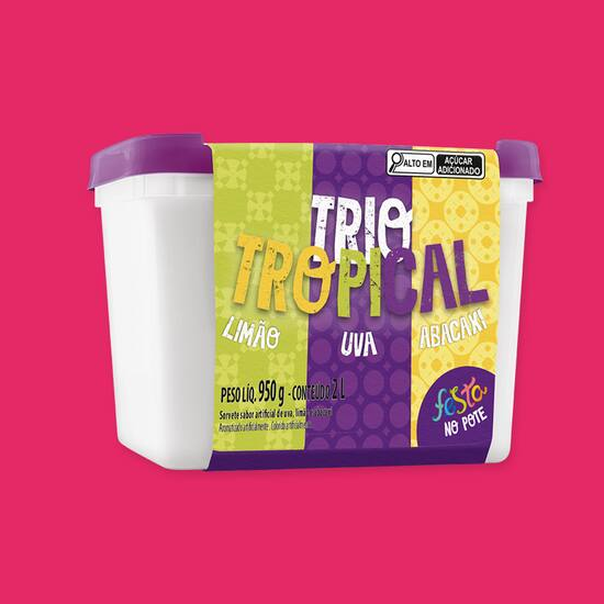 Sorvete com três sabores tropicais, uva, limão e abacaxi, tudo em um único pote. Alérgicos: Contém glúten e derivados de leite. Pode conter derivados de castanhas