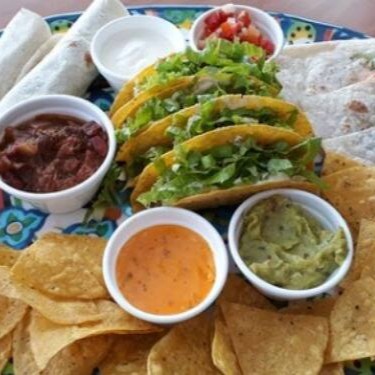2 tacos do seu sabor preferido, uma porção de nachos e um guacamole.