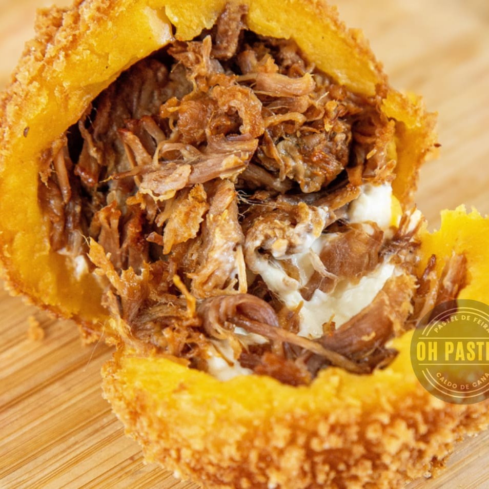 Pastel quentinho e frito na hora, costela suculenta e cream cheese cremosinho. Aquela mordida perfeita!