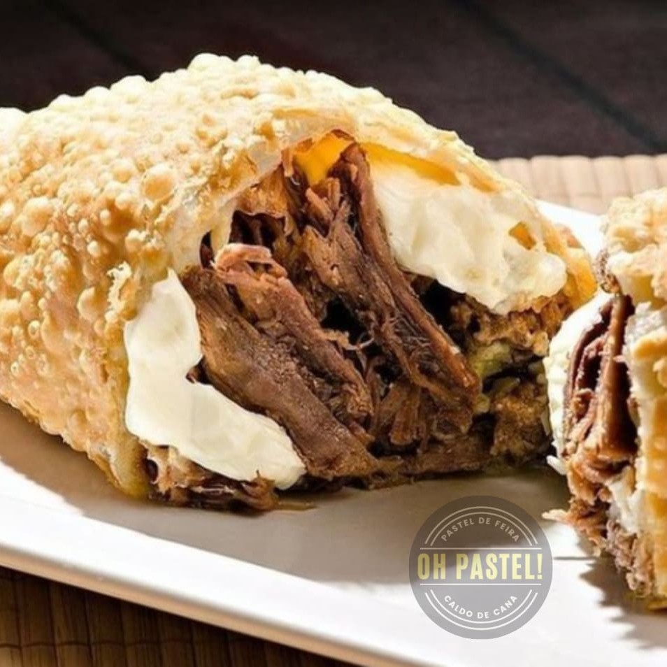 Pastel quentinho e frito na hora, recheio especial de carne seca desfiada e mussarela. Explosão de prazer que vai te conquistar.