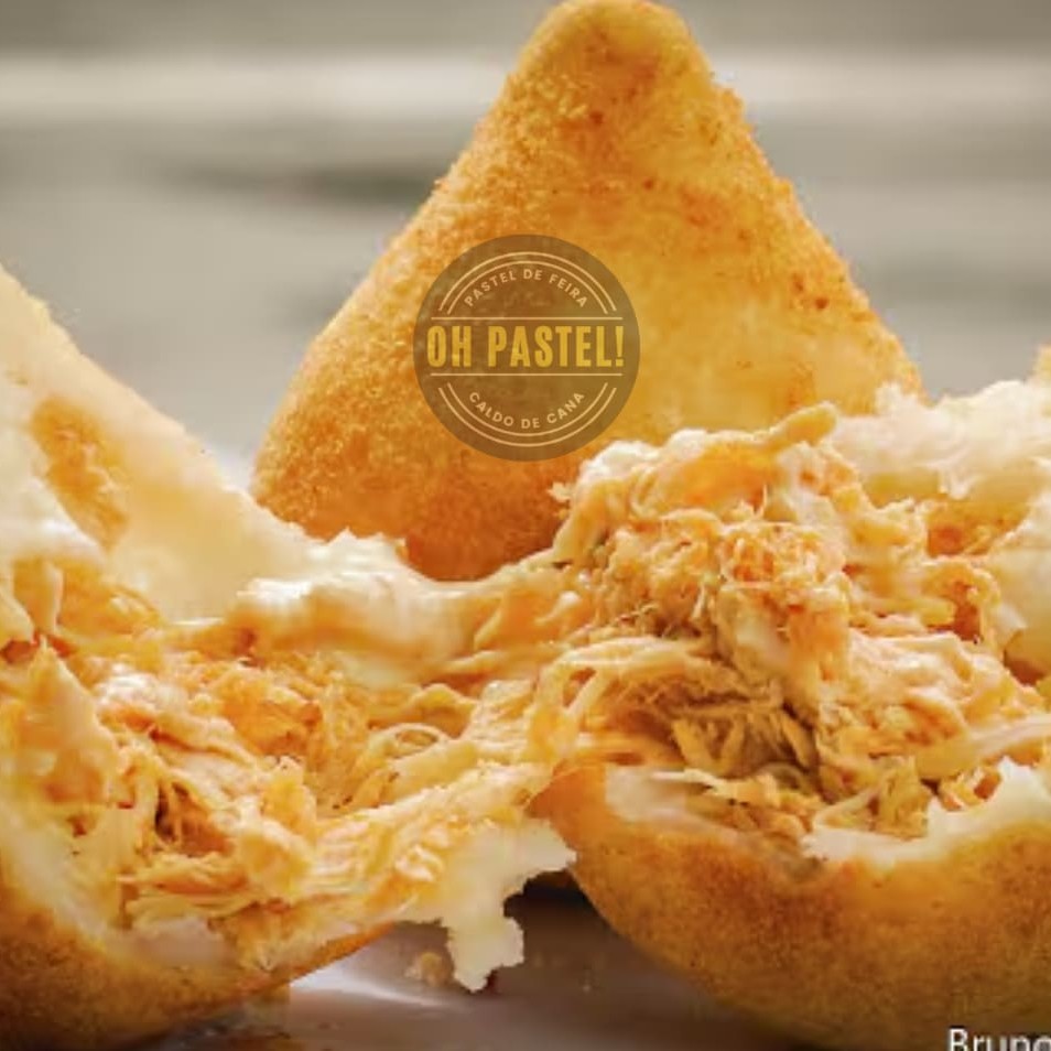 Pastel quentinho e frito na hora, frango desfiado bem saboroso e cream cheese. Irresistivelmente saboroso.
