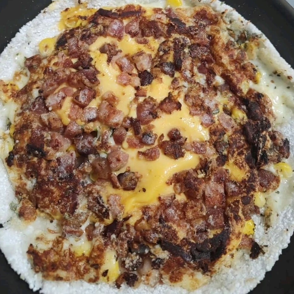 Milho,frango,musarela,cream cheesse,cheader Polenghi e bacon