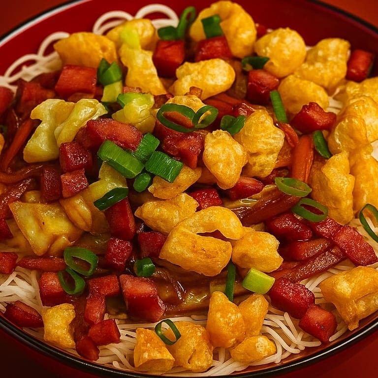 Nosso clássico de macarrão de arroz bifum, preparado no estilo da casa. Salteado com frango, bacon e legumes frescos (repolho, cenoura e cebola), finalizado com um toque de gengibre e tempero especial à base de peixe e óleo de gergelim. Leve, aromático e cheio do sabor autêntico da Okaasan.