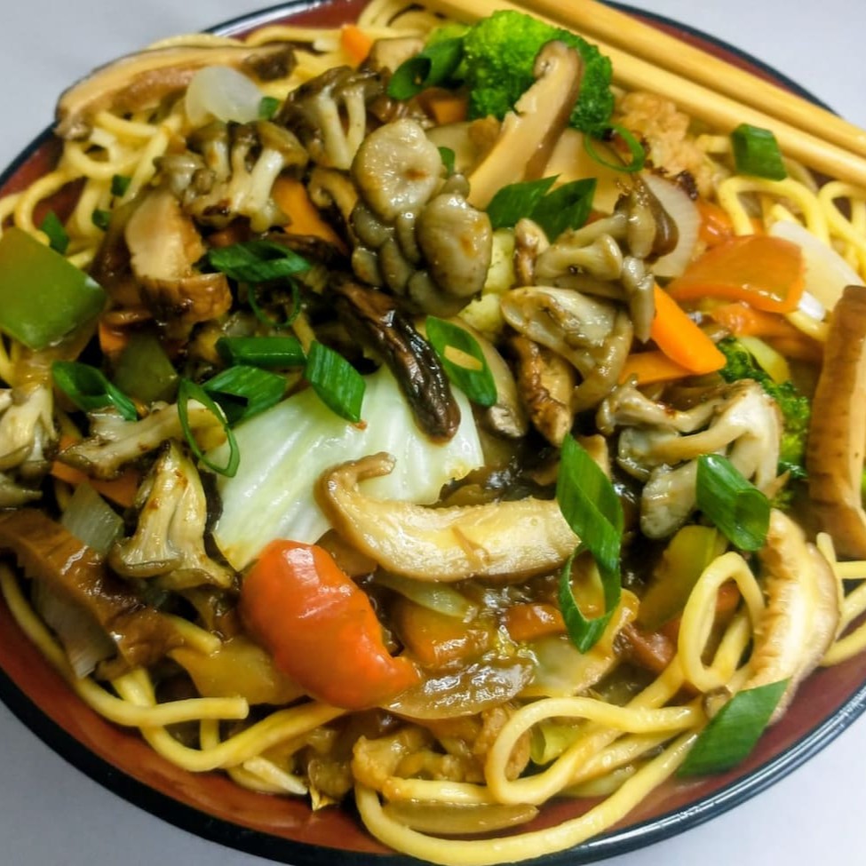 Sabor profundo e aroma irresistível!nosso yakisoba de cogumelos combina o toque especial do shimeji e shitake salteados com o mix colorido de cenoura, brócolis, couve-flor, cebola, pimentão e repolho, tudo envolvido no molho especial exclusivo da casa e servido com macarrão oriental no ponto ideal e finalizado com óleo de gergelim. Uma experiência rica, aconchegante e 100% vegetal!