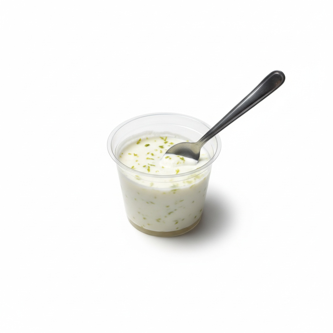 16 anéis de lula empanada e frita, e molho tonkatsu.