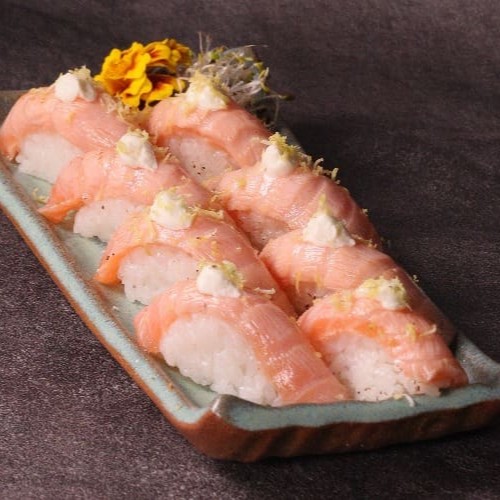 Sushi flambado a moda da casa com raspas de limão siciliano e cream cheese. (sem alteração)