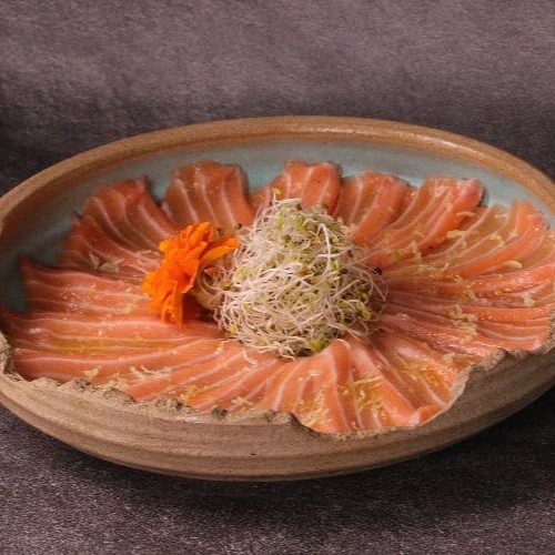Sashimi de barriga de salmão com azeite trufado, flor de sal e raspas de limão siciliano. (Sem Alteração)
