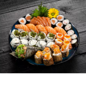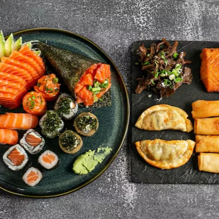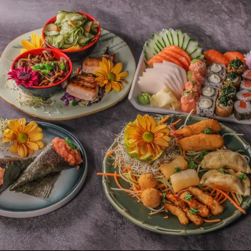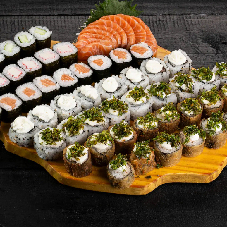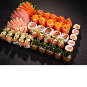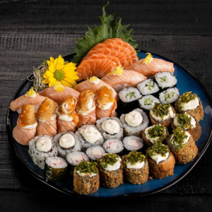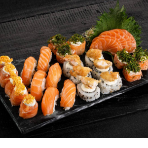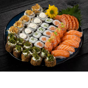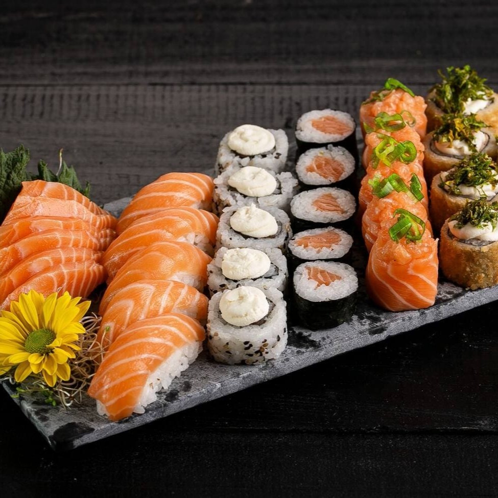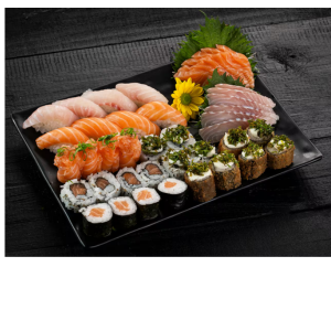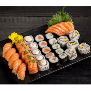 6 sashimi de salmão 6 sashimi de tilápia 4 uramaki de salmão 4 jhou de salmão 4 hossomaki de salmão 2 niguiri de salmão 8 hot holl 2 temaki de salmão Completo 1 porção de shimeji 1 porção de sunimono 2 croquete ,2 Guiosa , 2 harumaki de queijo , 2 salmão grelhado, 2 camarão com Catupiry. *Deixe sua avaliação no Iffod vai nos ajudar muito !!