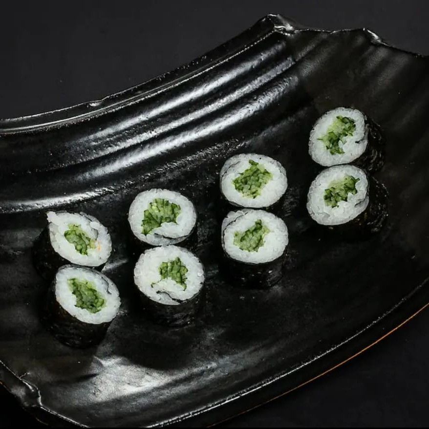 Enrolado em uma folha de alga marinha ,recheado com arroz e pepino. (sem alteração)