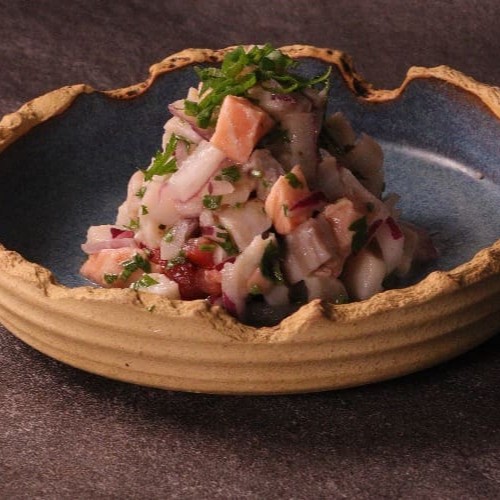 Mix de peixe temperado com molho cítrico finalizado com cebola roxa e legumes. (sem alterações)