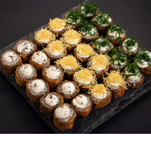 2 guiosa , 2 harumaki queijo , 2 bolinho de frango , 1 shimeji , 1 salmão grelhado .