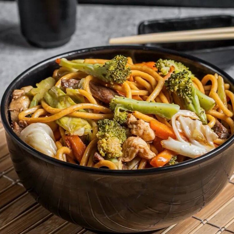 (牛肉、鸡肉意面)Macarrão,brócolis,cenoura,cebolinha,repolho e carne, frango