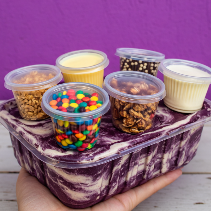 Verdadeiro Açaí cremoso 💜 + 4 acompanhamentos à sua escolha 🍓🍫🥜 Doce, geladinho e do jeitinho que você ama 😋✨