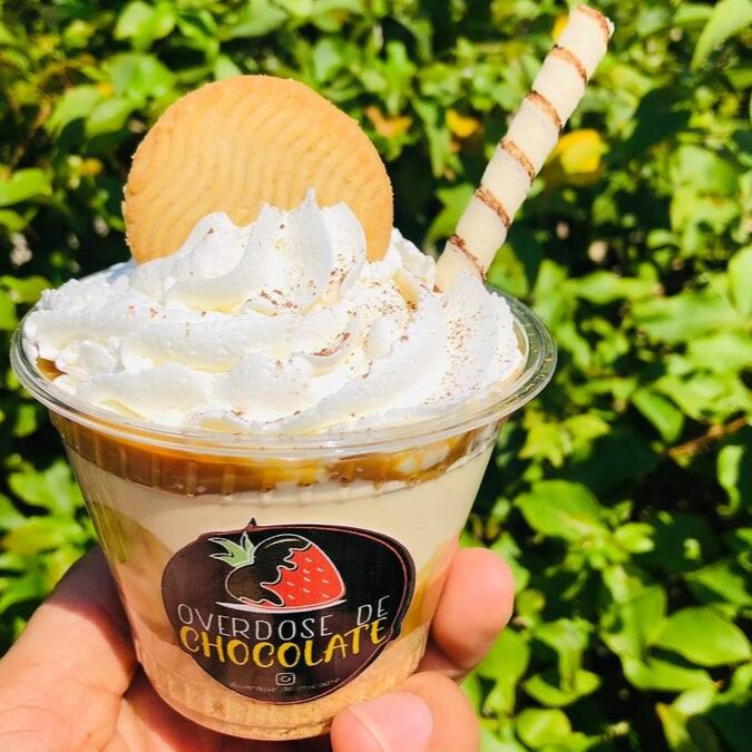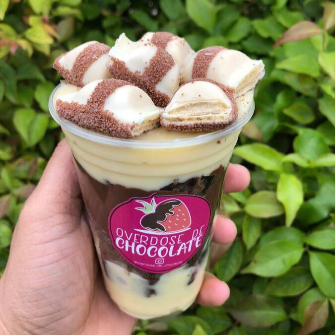 Delicioso chocolé overdose de chocolate, feito com chocolate nobre recheado com Nutella e bolo de chocolate.