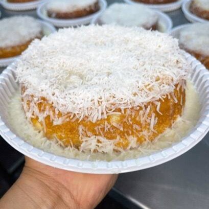 Massa de baunilha artesanal fofinha, humidecida com leite e leite condensado e muito coco.