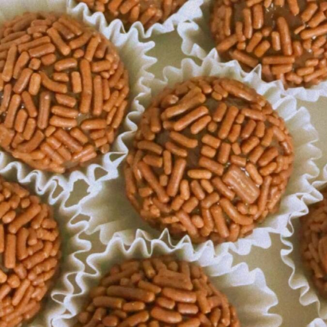 Brigadeiro aos leite, chocolate, Nutella, brownie morangos e Ninho.